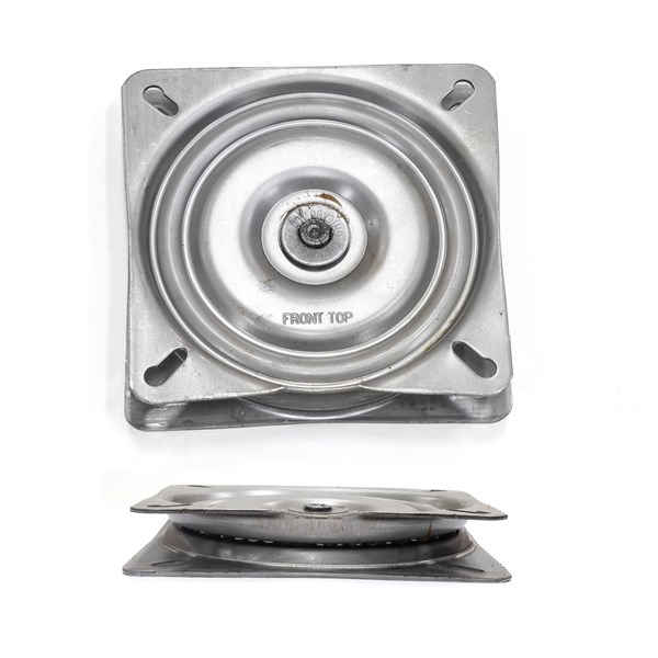 Metal swivel designed to rotate 360 degrees, providing smooth seat movement. Bolts to a square bolt pattern with approximately 5-3/4" center-to-center spacing. Features a 3-degree rearward sloping pitch to enhance seating comfort and ergonomics.